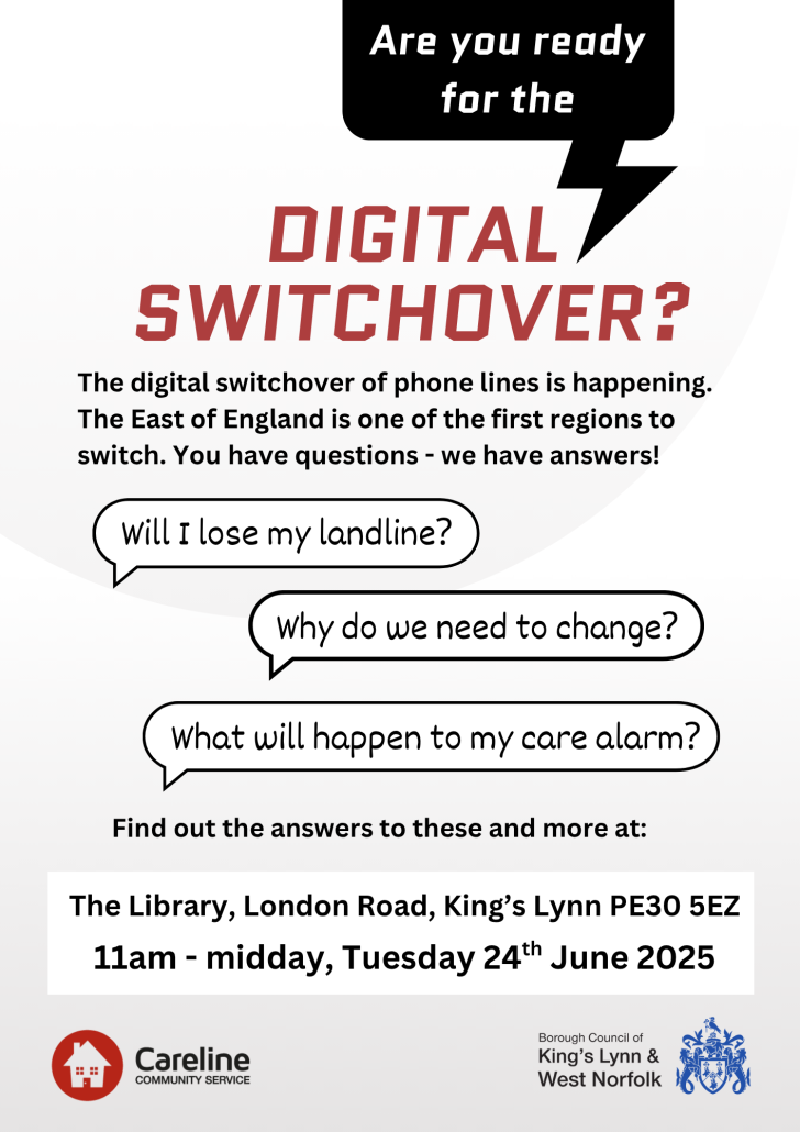Lorcan from Careline Community Service was at the library giving a short talk and and answering your questions about the digital switchover of phone lines. If you have a care alarm or are reliant on your landline in other ways, you need to be prepared for these changes.